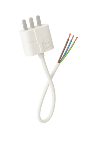 Skala av den yttre isoleringen på kabeln cirka två centimeter, och den inre isoleringen (blå, brun och eventuellt gul/grön för jord) ungefär 0,5 centimeter.