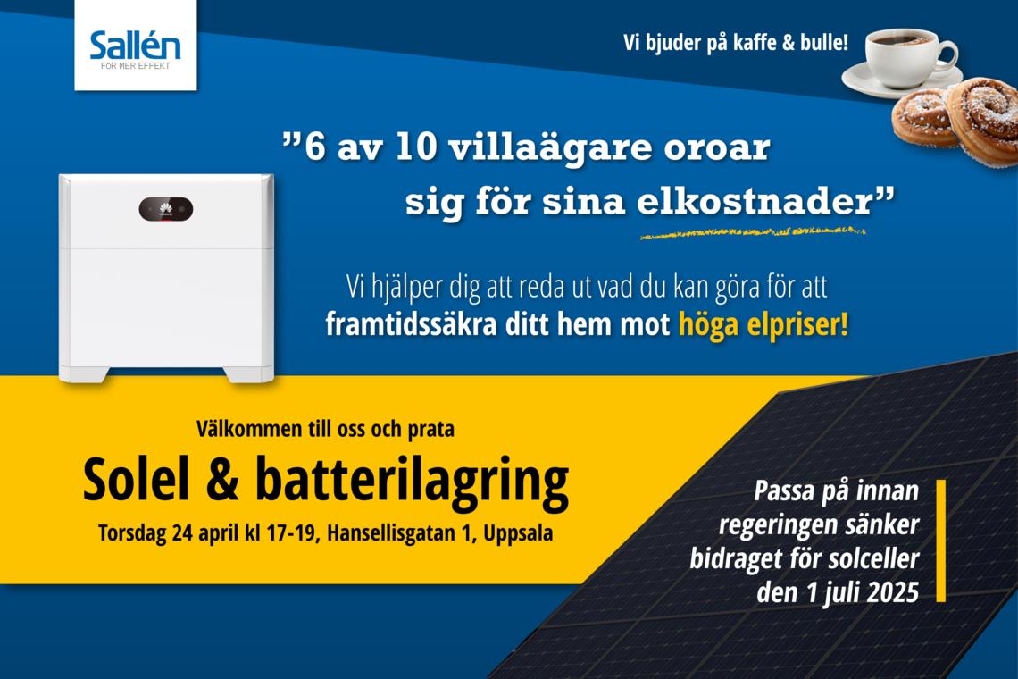 Besök oss på vår ENERGIKVÄLL den 24 april kl 17-19 så hjälper vi dig att reda ut vad du kan göra för att framtidssäkra ditt hem mot höga elpriser.
