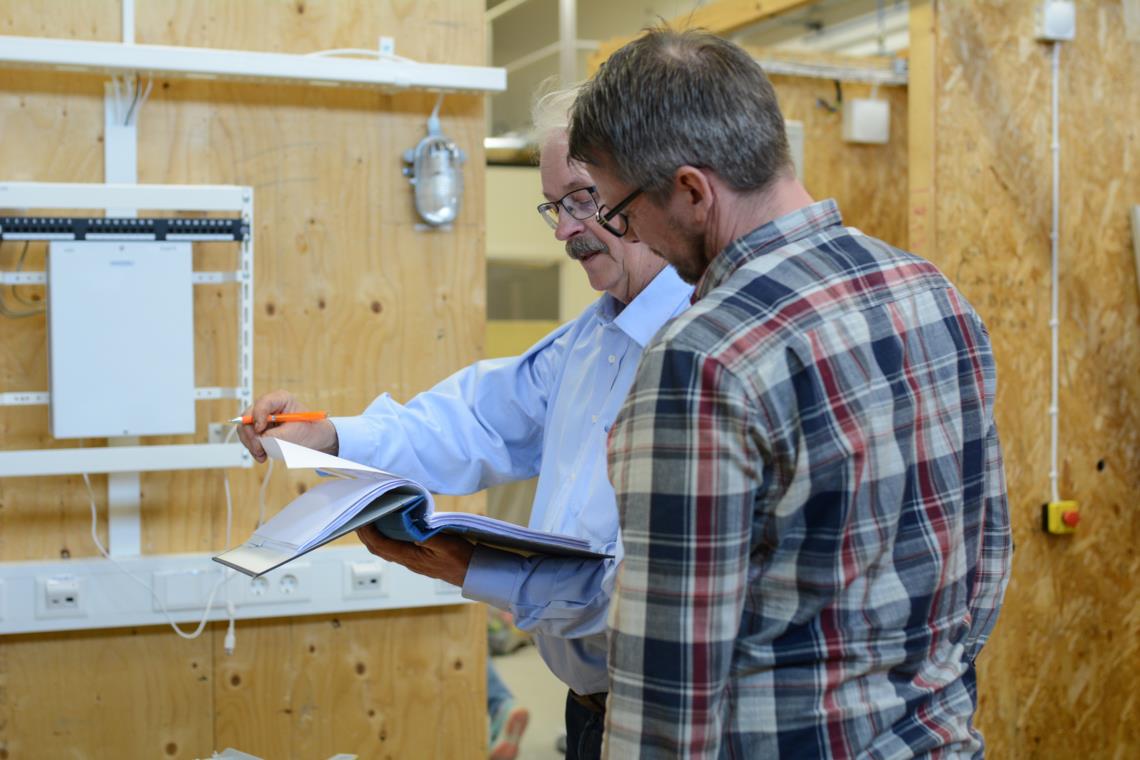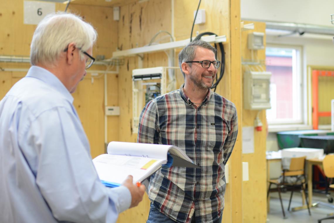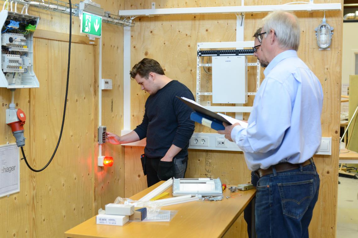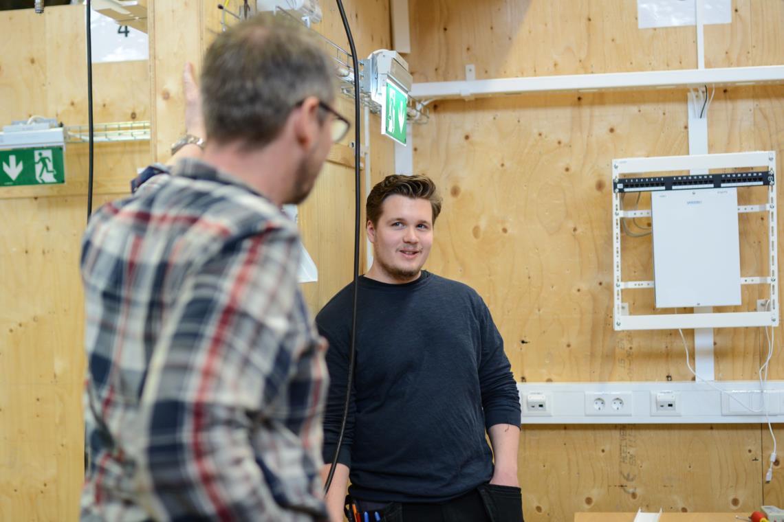 Klas Wallsten, KMA-ansvarig, tillsammans med Niclas Åsbrink, Projektledare Entreprenad, var på plats och säkerställde kvalitén på elevernas installationer i yrkesprovet ETG. Läs mer om ETG »