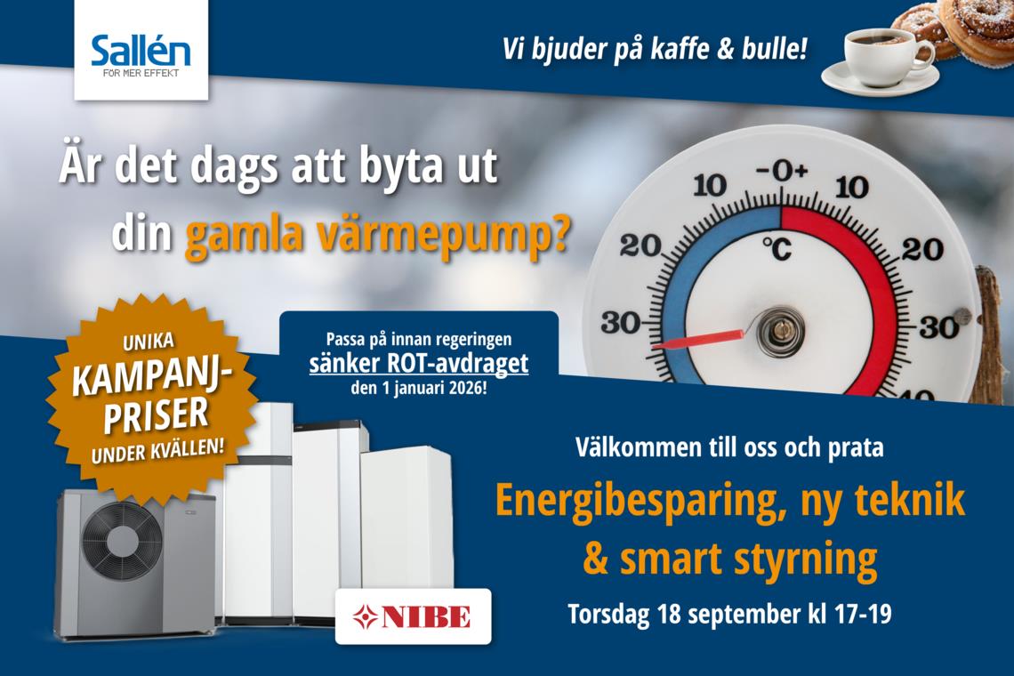 Är det det dags att byta ut din gamla värmepump? Besök oss på vår VÄRMEPUMPSKVÄLL den 18 september kl 17-19 på Hansellisgatan 1 i Uppsala.