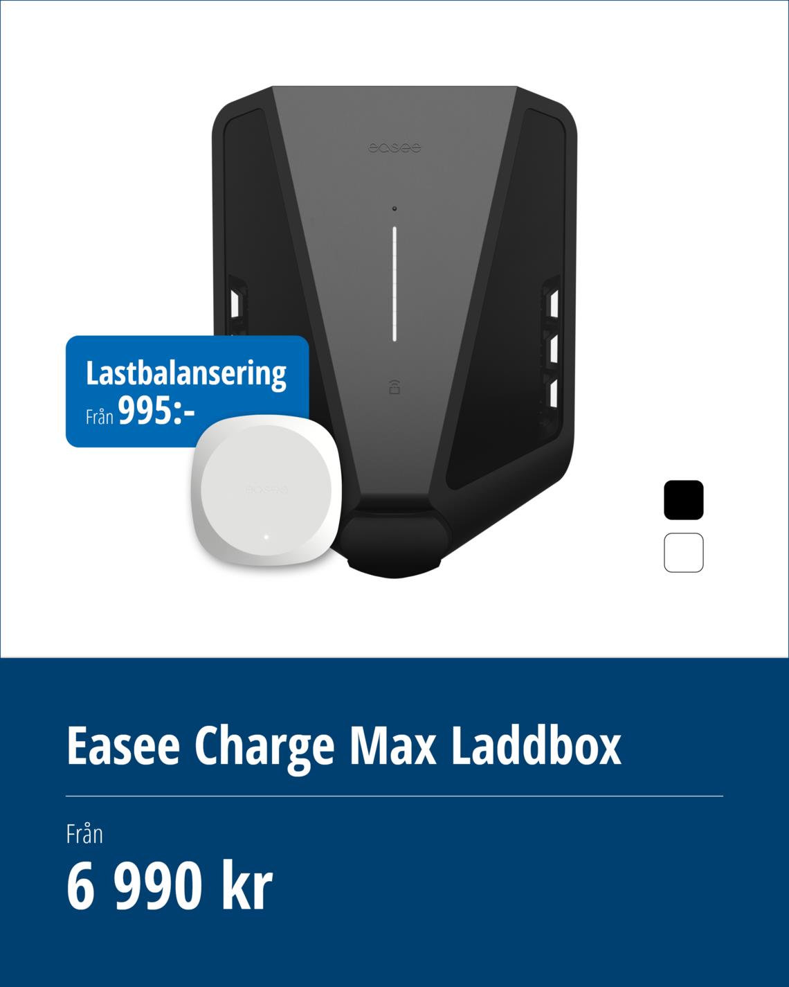 Easee Charge Max är utformad för att leverera exakta energiavläsningar, transparent fakturering och fullständig kontroll av laddningskostnaderna genom en integrerad MID-kompatibel energimätare. Charge Max kan ladda upp till 7,4 kW på en 1-faskrets och upp till 22 kW på en 3-faskrets. Easee Link™ - lokal last-och fasbalansering.