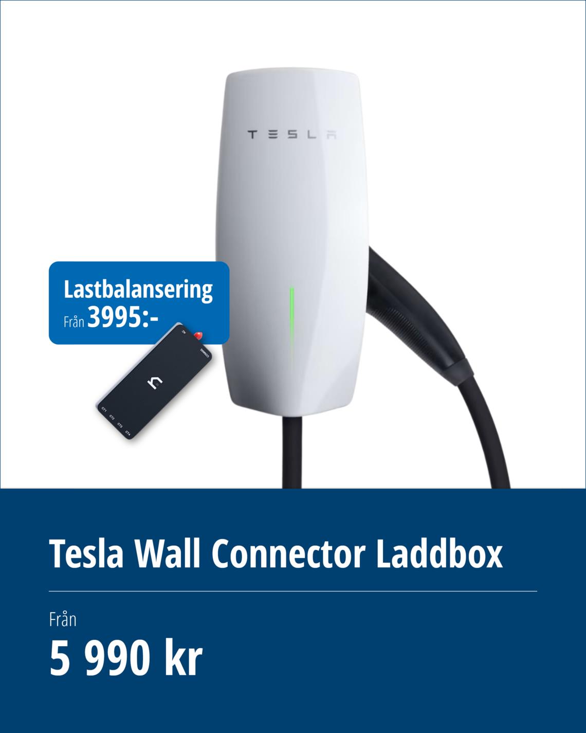 Tesla Wall Connector är en lätt och flexibel laddbox som kan installeras både inomhus och utomhus, kompatibel med alla elbilar med Type2-kontakt. Den stöder upp till 22 kW 3-fasladdning, har Wi-Fi för trådlösa uppdateringar och möjliggör strömdelning mellan flera enheter. Enkel att installera och hantera via Tesla One-appen, vilket gör den idealisk för hus, lägenheter, och arbetsplatser.