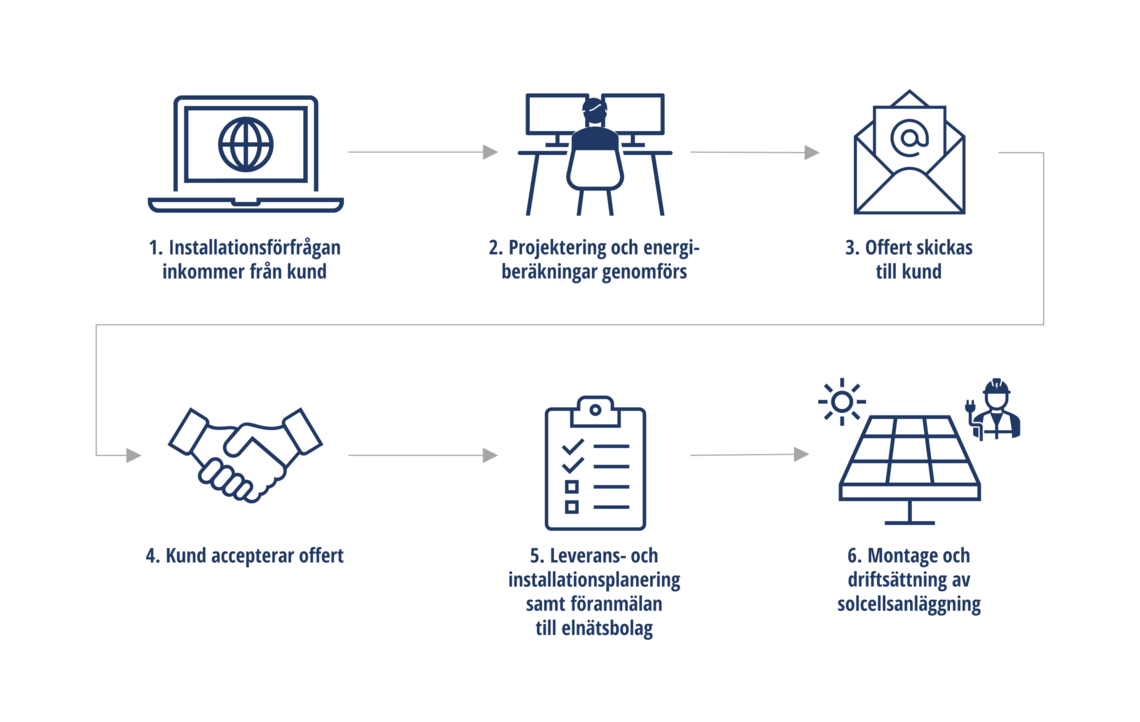 5. En leverans- och installationsplanering genomförs samtidigt som material beställs och en föranmälan skickas in till ditt elnätsbolag.