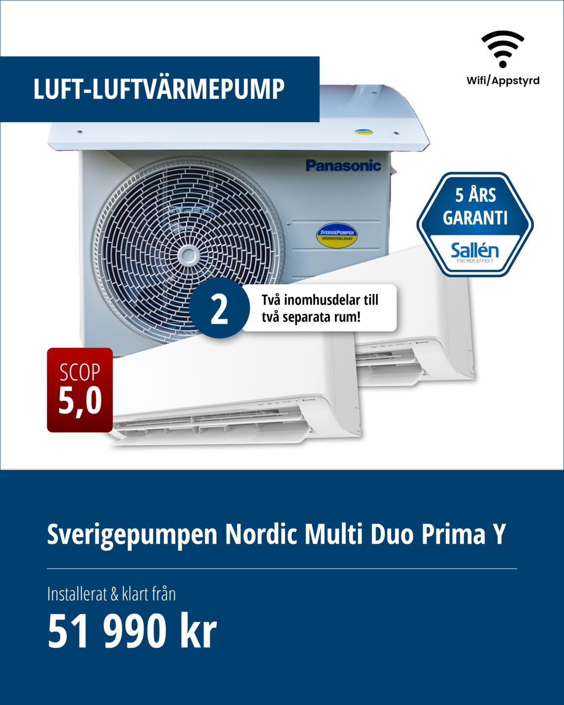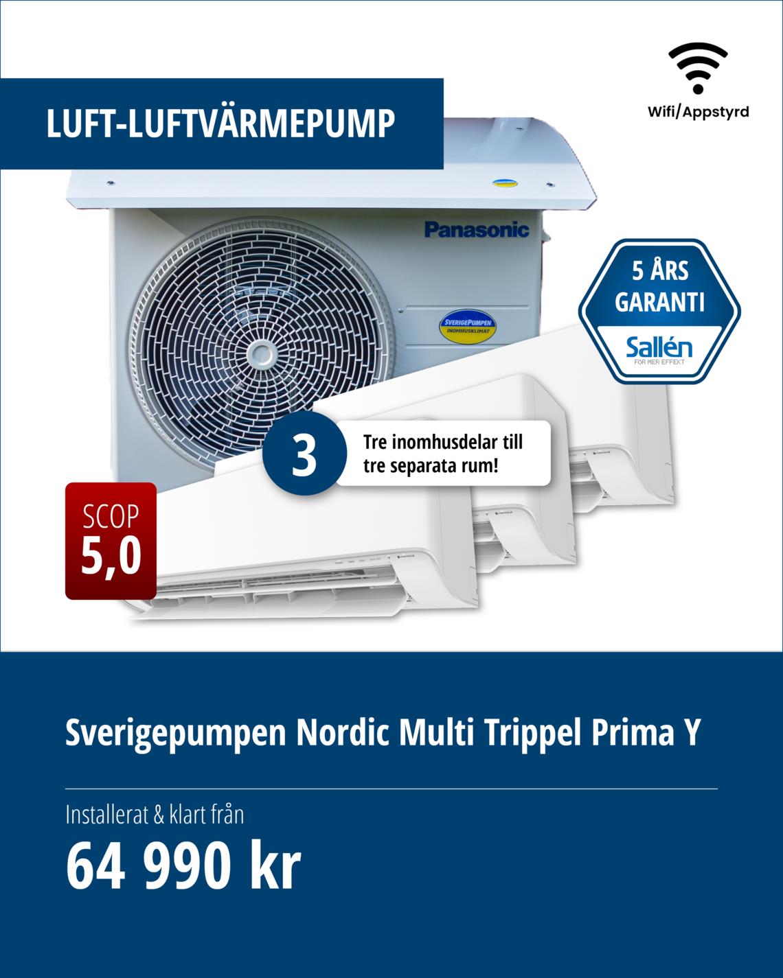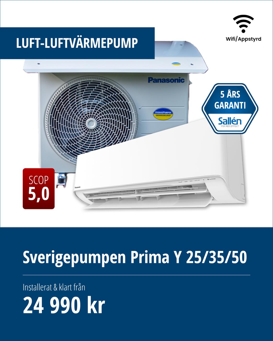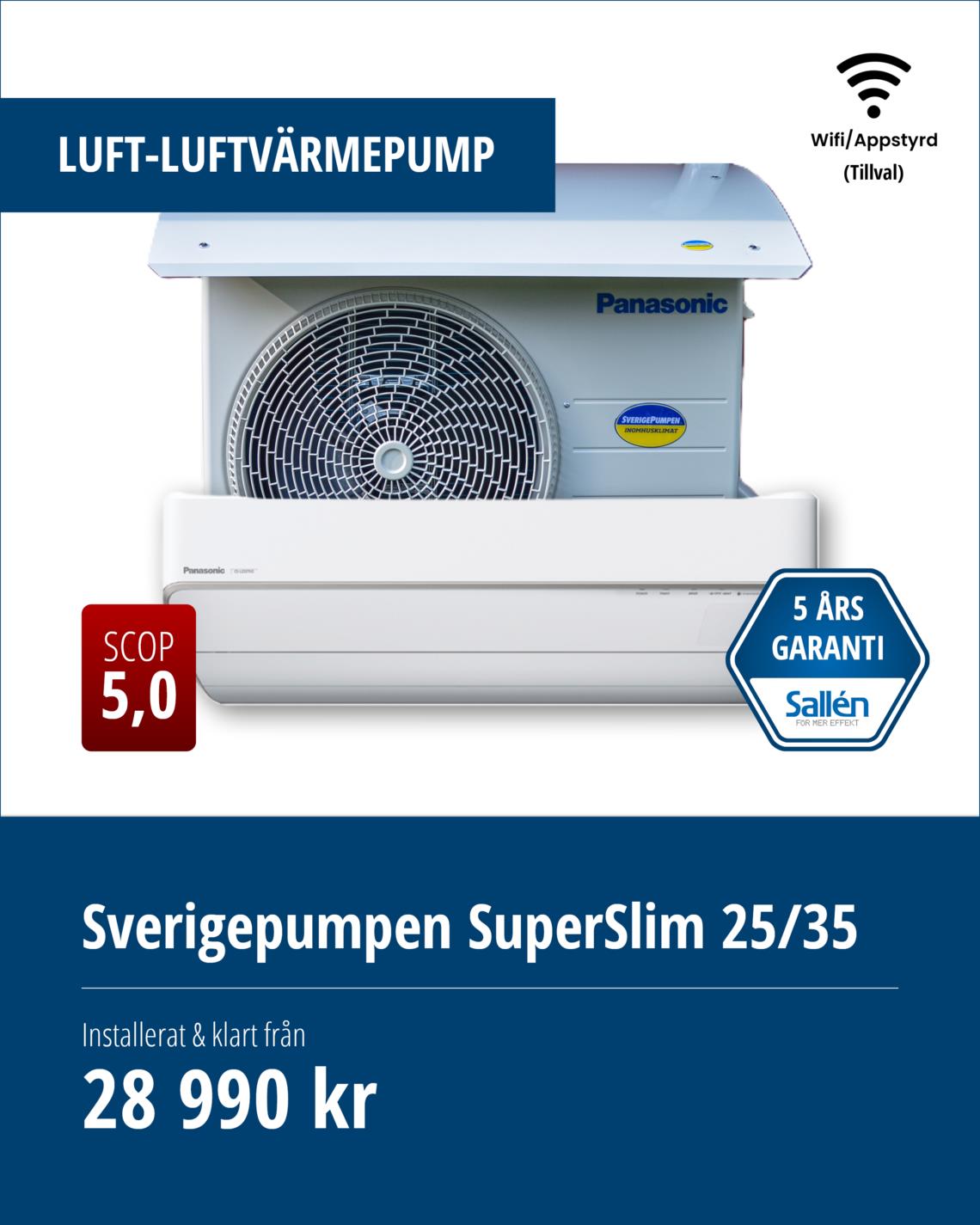 Vi erbjuder installation, felsökning och reparation av luftvärmepumpar från Panasonic / Sverigepumpen. Sverigepumpen erbjuder energieffektiva luftvärmepumpar som kan sänka dina energikostnader rejält och förbättra inomhusklimatet. Dessutom får du alltid minst 5 års trygghet (garanti + försäkring), vilket gör det till en trygg investering!