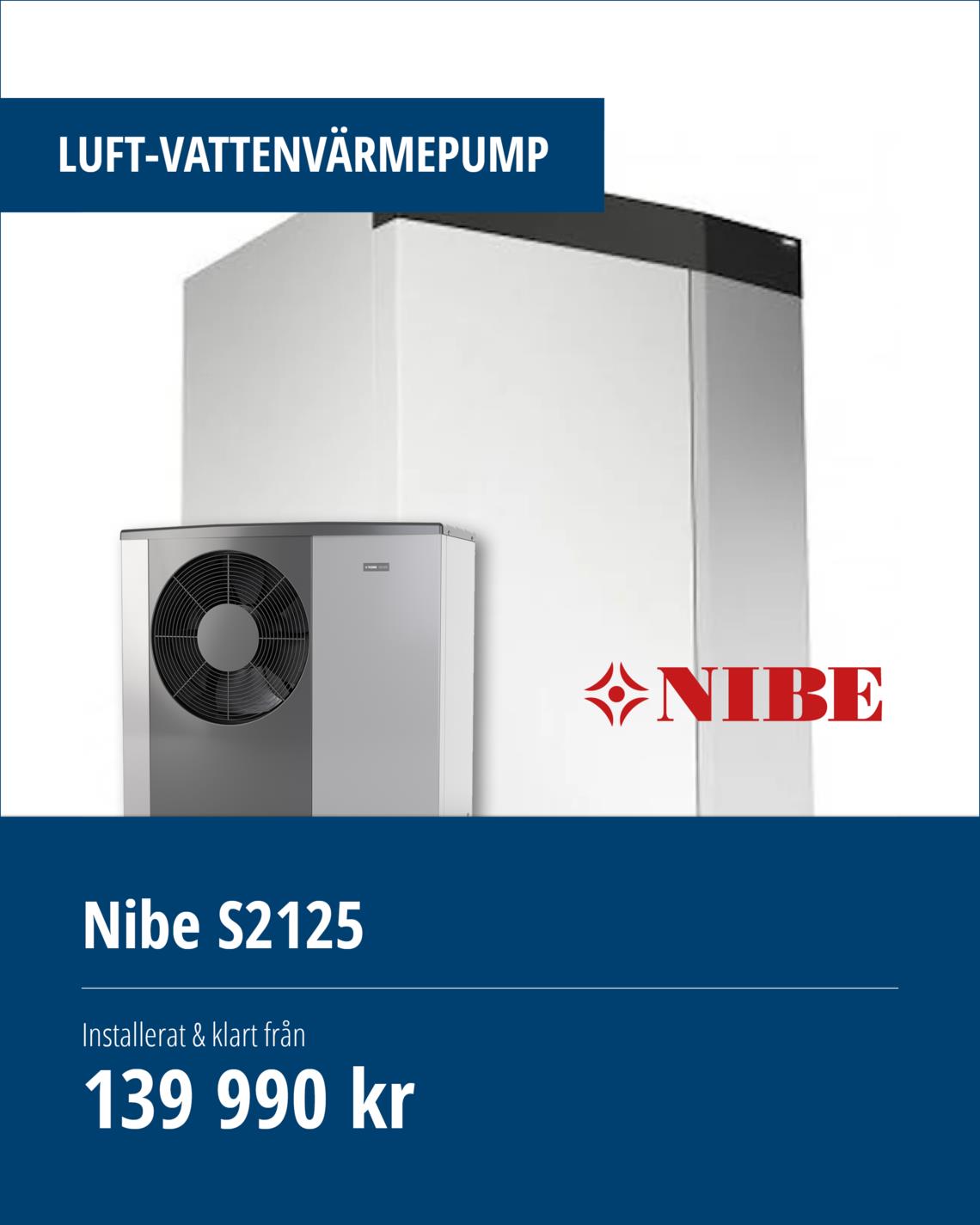 NIBE S2125 är en intelligent inverterstyrd luft-vattenvärmepump och den har en optimerad årsvärmefaktor vilket ger en låg driftskostnad och varmvatten med hög prestanda. Arbetsområdet ger en framledningstemperatur på upp till 75 °C. Vid en utomhustemperatur på ner till –25 °C levereras fortfarande upp till 65 °C, samtidigt som ljudnivån är låg.